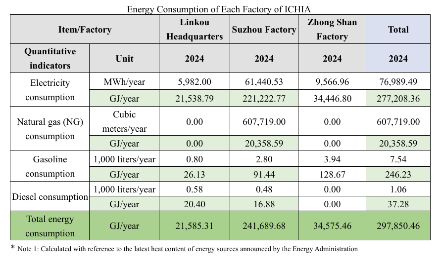 Energy consumption across all plants primarily relies on purchased electricity. Other fuels include natural gas, gasoline, and diesel, which are mainly used for company vehicles, forklifts, kitchens, cafeterias, and dormitories. In 2024, the total energy consumption was 297,850.46 GJ, representing a 7.56% reduction in energy intensity compared with 2023.